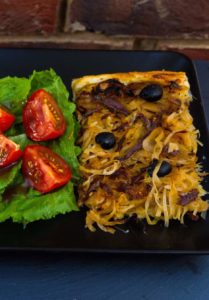 Pissaladière originates from Nice and makes great summer apéritif fare in addition to being a terrific appetizer or lunch dish. Bathed in sweet onions, this gorgeous tart can be served hot or cold. (pissaladière can be replaced by the REAL salade niçoise if you do not like onions).
